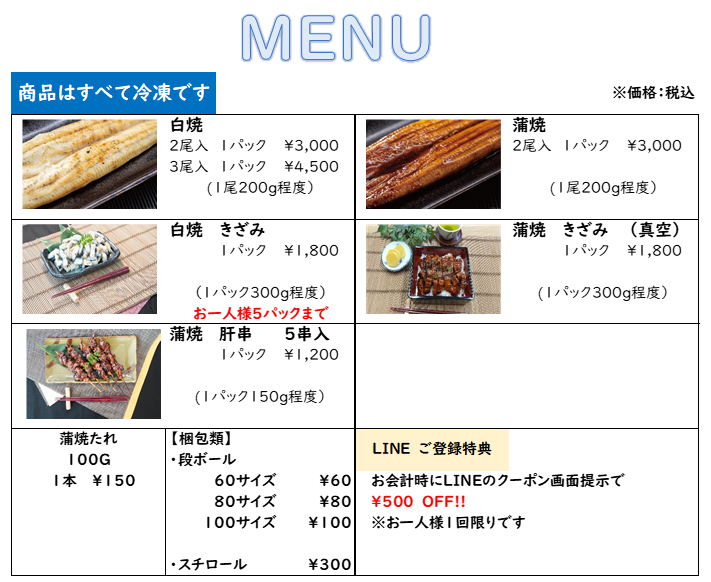 アカウント名 : 駿河淡水 うなぎ白焼販売会