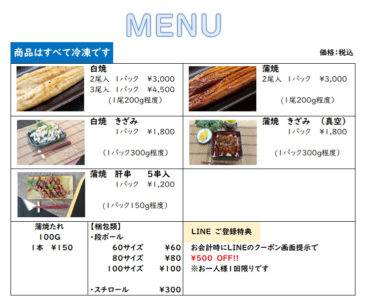 アカウント名 : 駿河淡水 うなぎ白焼販売会