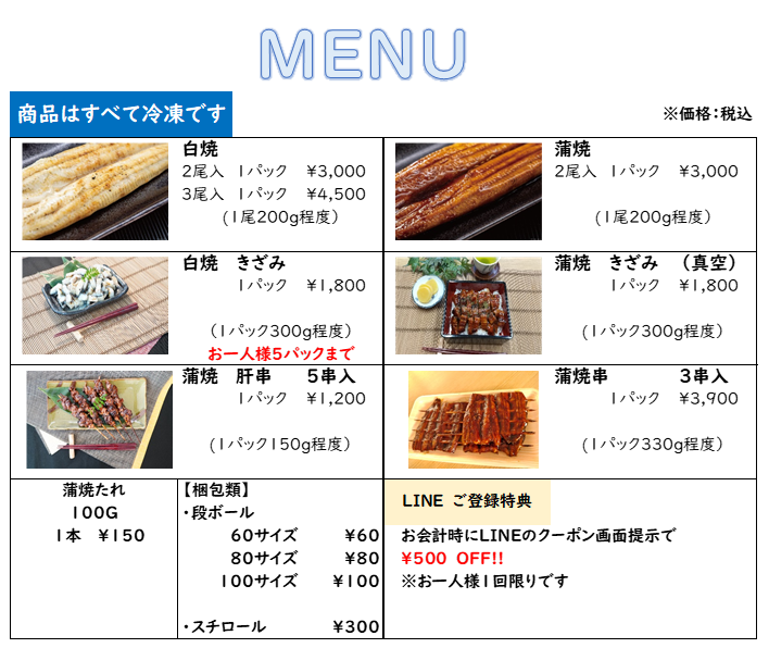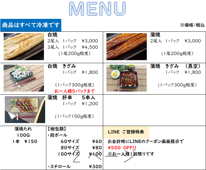 アカウント名 : 駿河淡水 うなぎ白焼販売会
